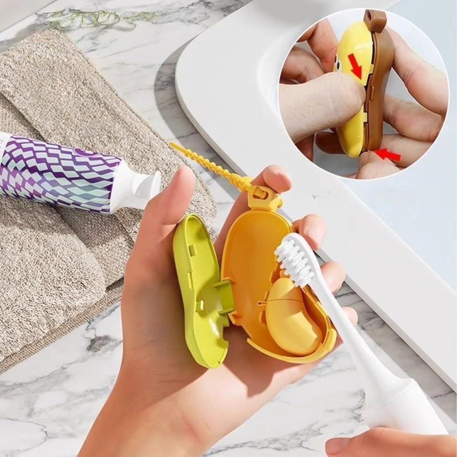 Add a splash of fun to your oral care routine with our Banana-Shaped Toothbrush Travel Case – a quirky and protective cover that keeps your toothbrush clean and travel-ready wherever you go!