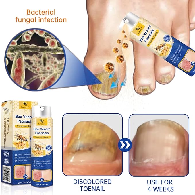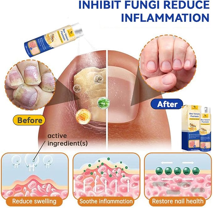 LOVILDS™ PsoriaHeal Bee Venom Psoriasis Treatment Spray cleanses the skin from the inside out, alleviating itching and inflammation. It is free from irritating chemicals and does not exacerbate already damaged skin. LOVILDS™ helps minimize the growth of skin cells triggered by psoriasis, providing relief from inflammation, itching, and scaling associated with this condition.