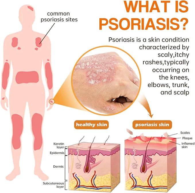Psoriasis is a chronic autoimmune disease where the immune system of psoriasis patients mistakenly attacks normal, healthy skin cells, leading to excessive growth, accumulation, scaling, and redness of skin cells. This ultimately results in the formation of typical psoriasis plaques (they can appear anywhere but are most commonly found on the scalp, elbows, knees, and lower back).