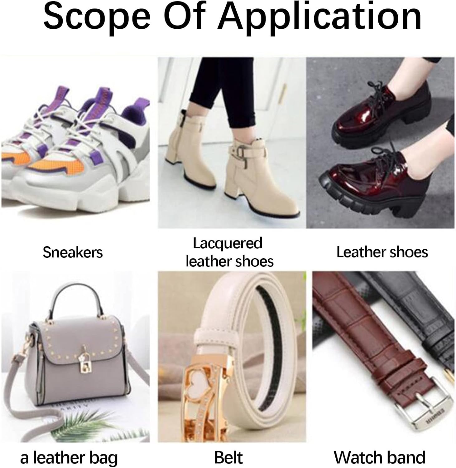 Widely Application : It can be used to remove yellowing, percuddling and dirt from all kinds of shoes, such as casual tennis shoes, sports shoes, casual shoes, boots, leather shoes, patent leather shoes etc. It also can be suitable for leather bags, belts, watch straps, etc.